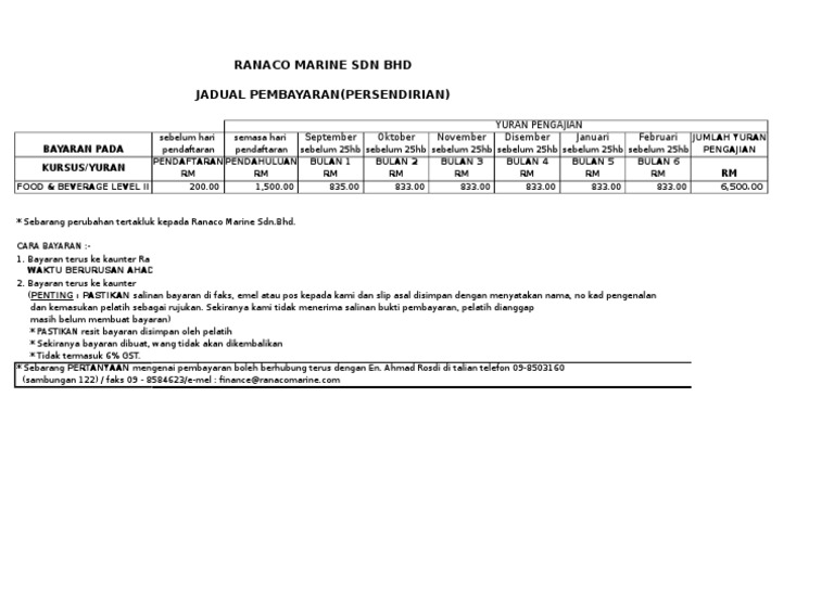 Jadual Pembayaran Personel Food Beverage Level 2 Pdf